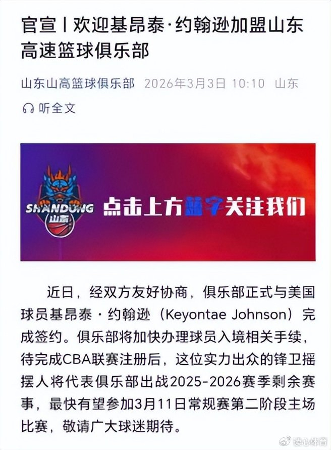 直播入口-广东1喜2忧,上海核心即将归队,山东官宣第4外援,福建1签1裁|古德温|山东队|约翰逊|广东男篮|广东宏远_新浪体育_新浪新闻